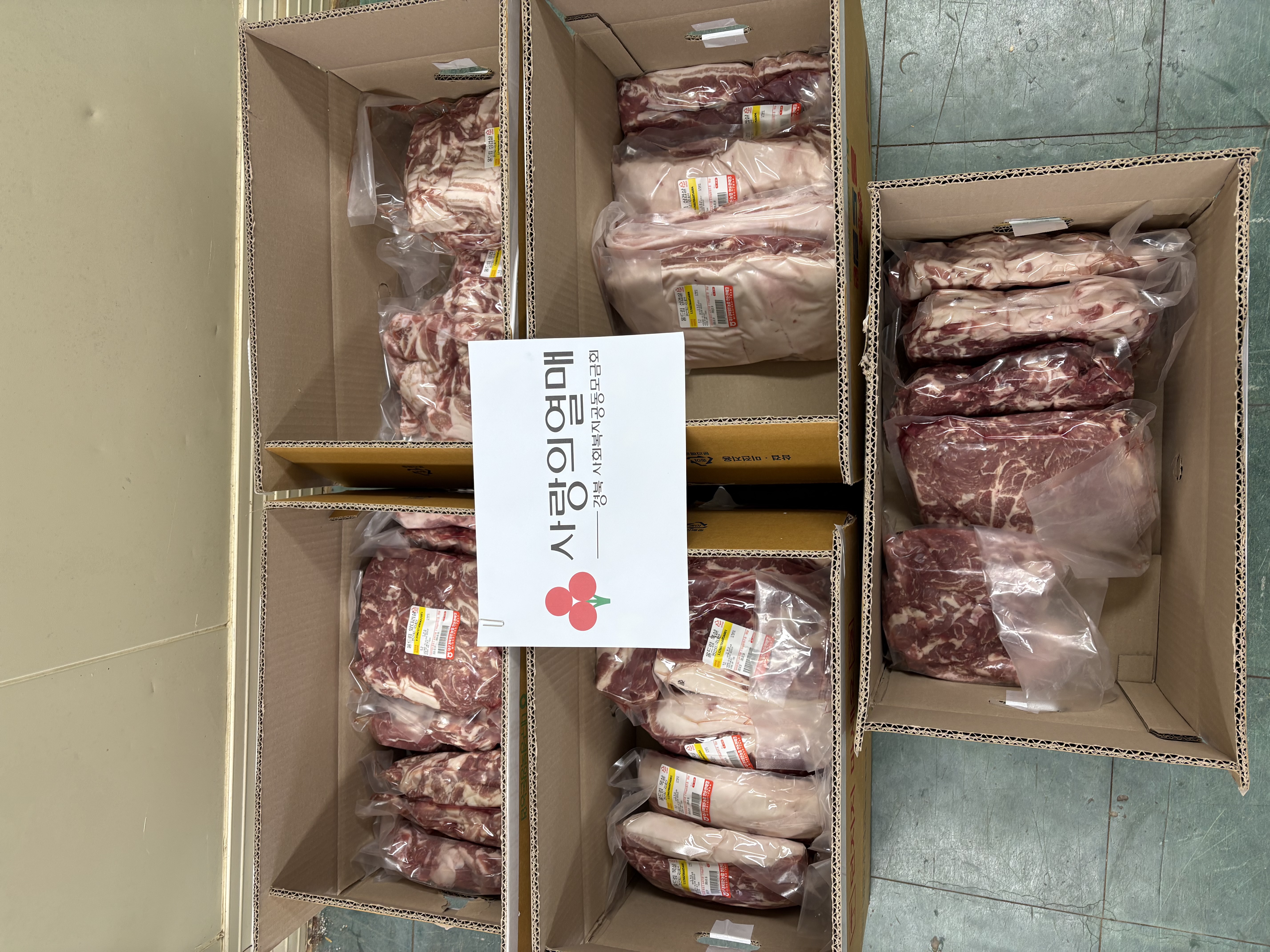 에서 돼지고기를 후원해주시어 배부받았습니다.