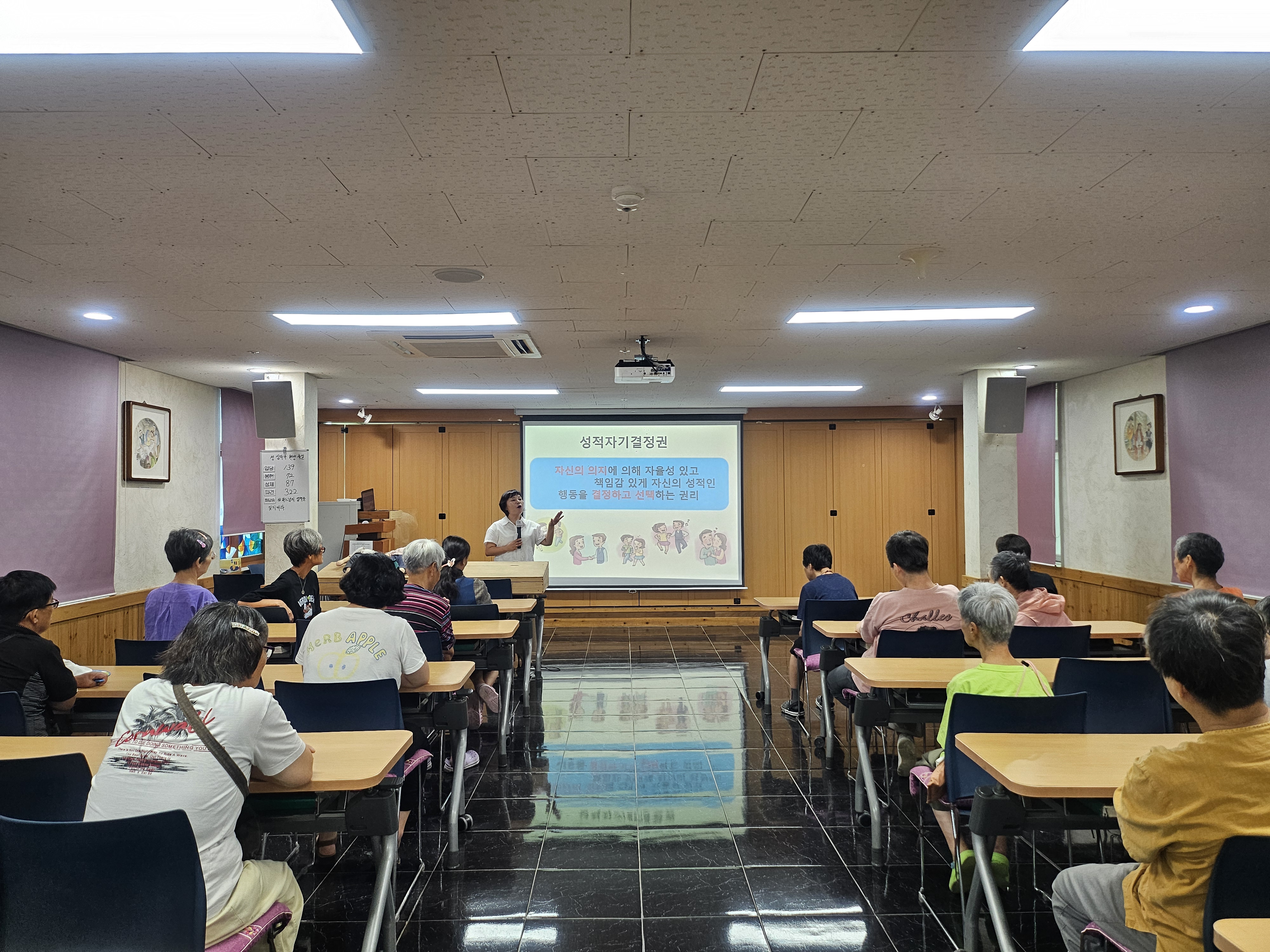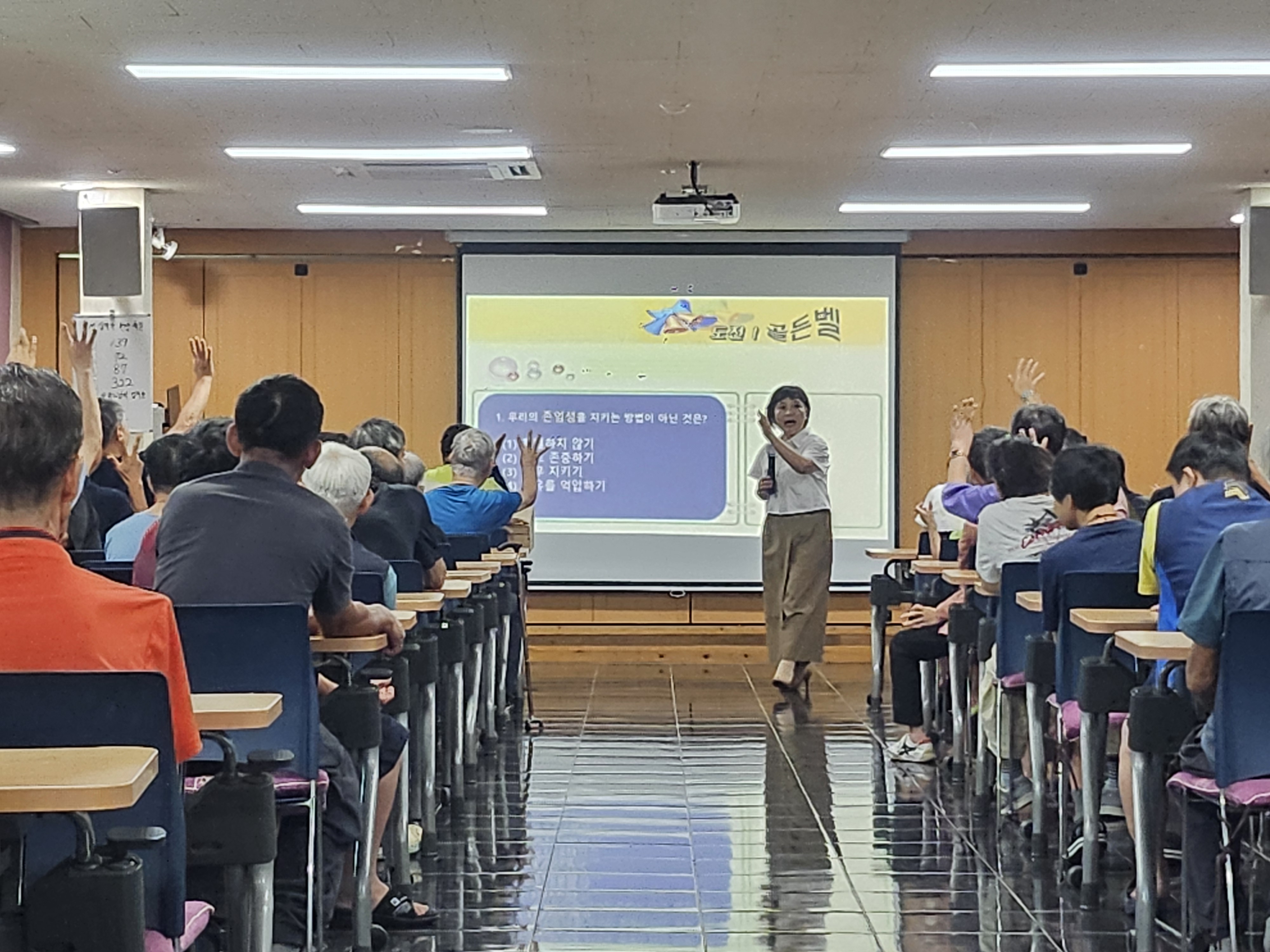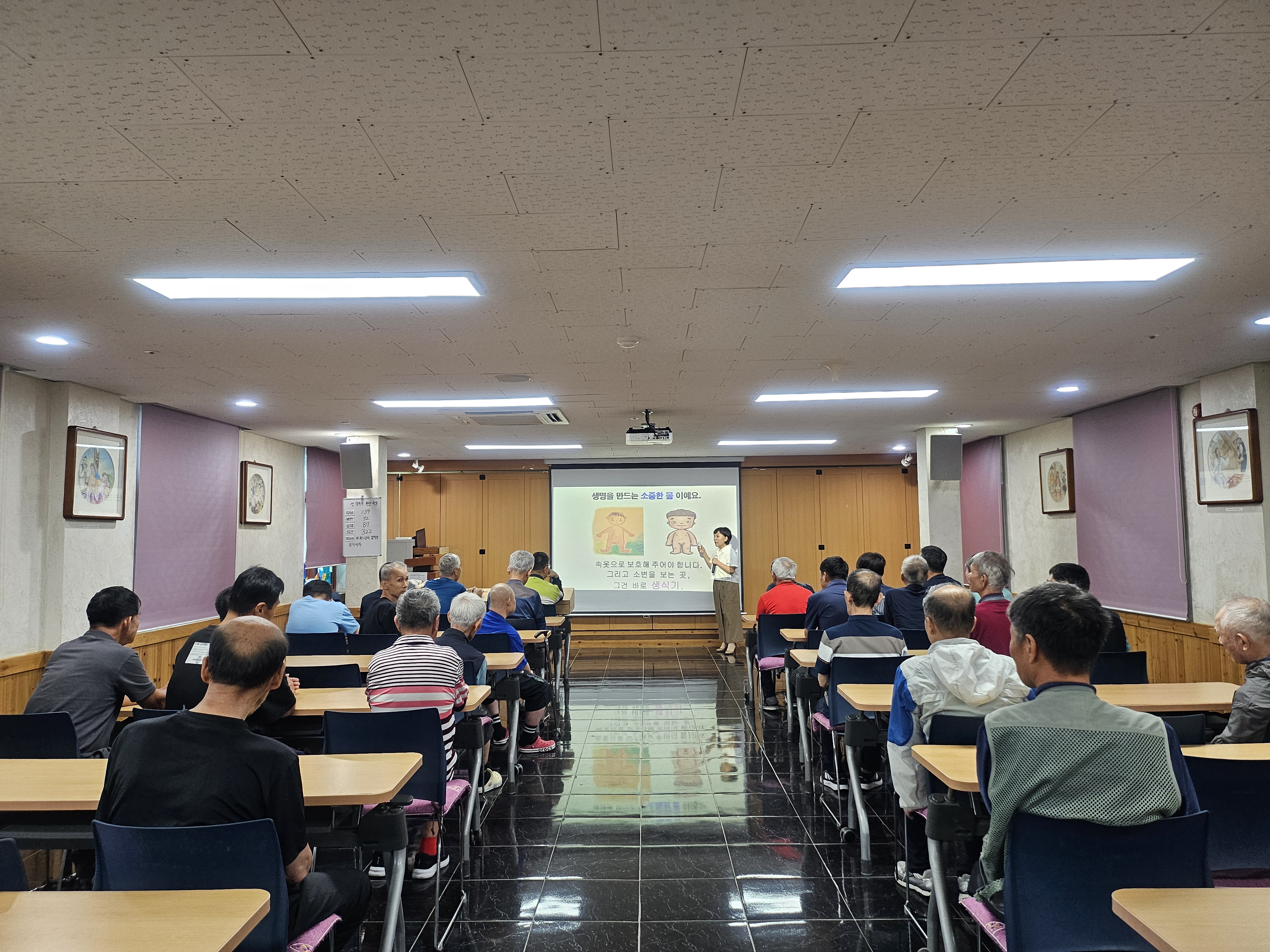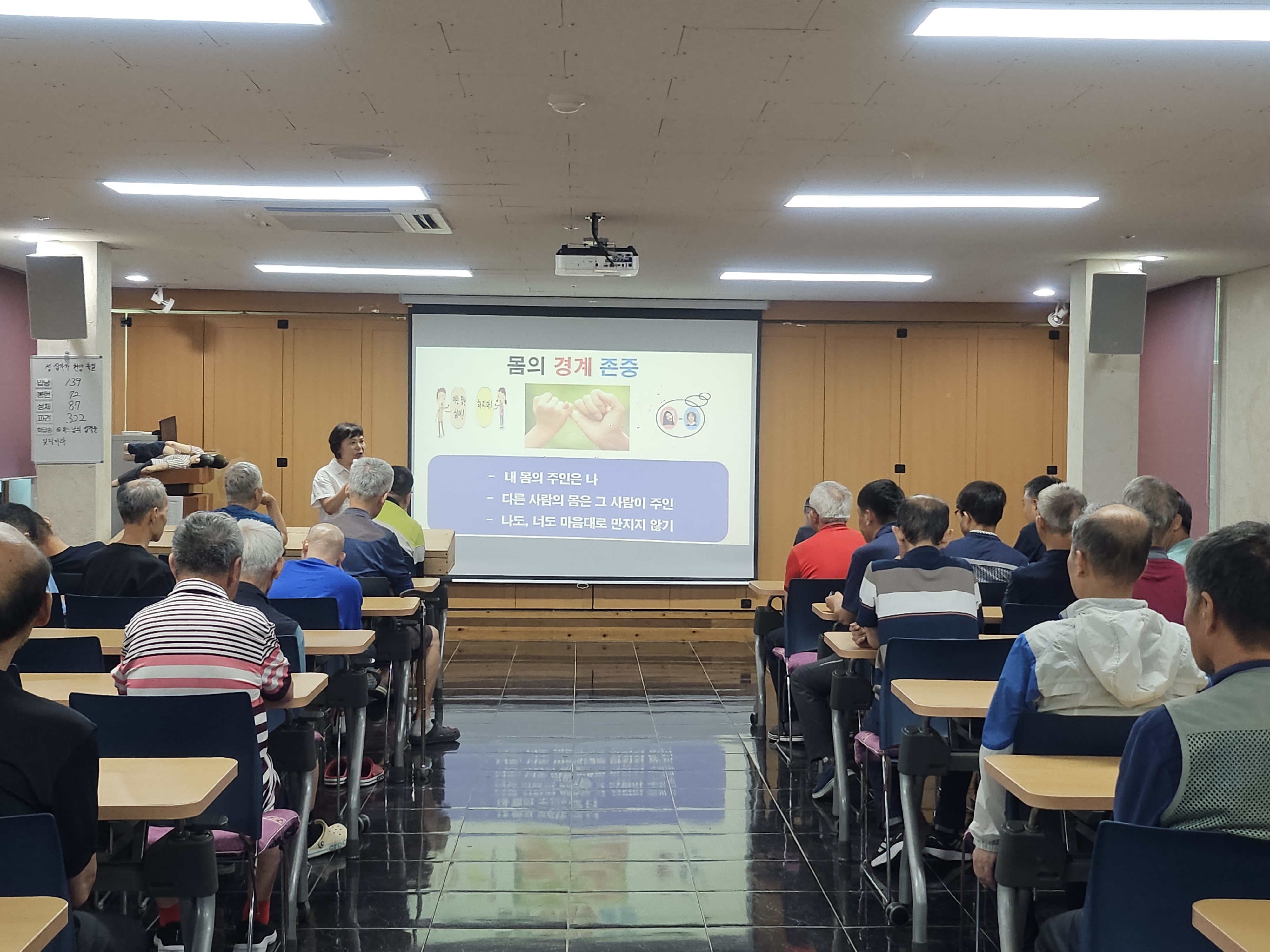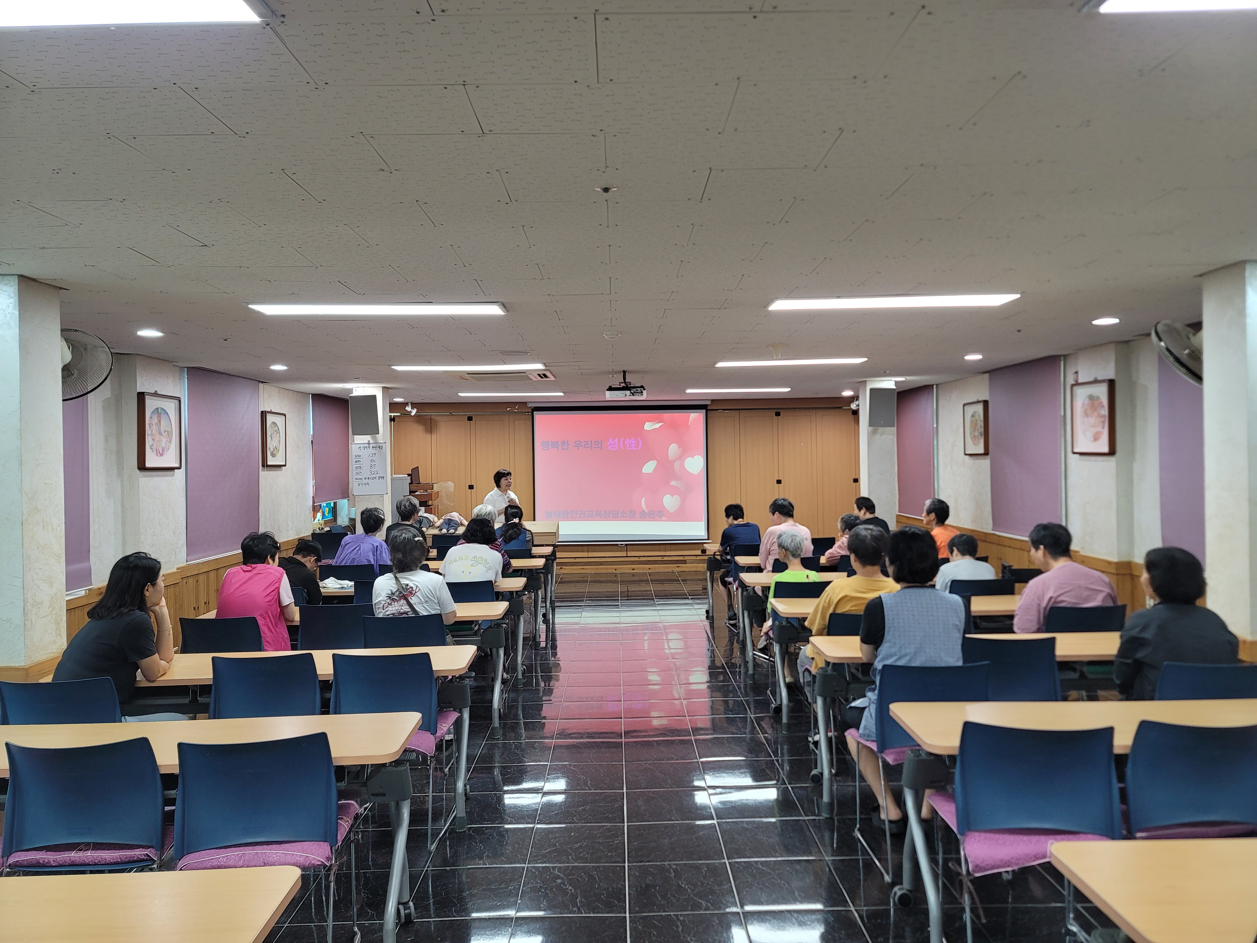 금일 교육의 내용이 낯설고 민감한 주제일 수 있기에 강의 초반에 강사님께서 최대한 부드럽게, 반갑게 유머를 섞어가며 분위기를 열어주셨습니다. 그랬더니 점차 교육에 참여한 거주인분들이 마음을 열고 고개를 끄덕이며 강사의 이야기도 들어주고 질문에 응답하는 시간을 자연스럽게 가질 수 있었습니다.
