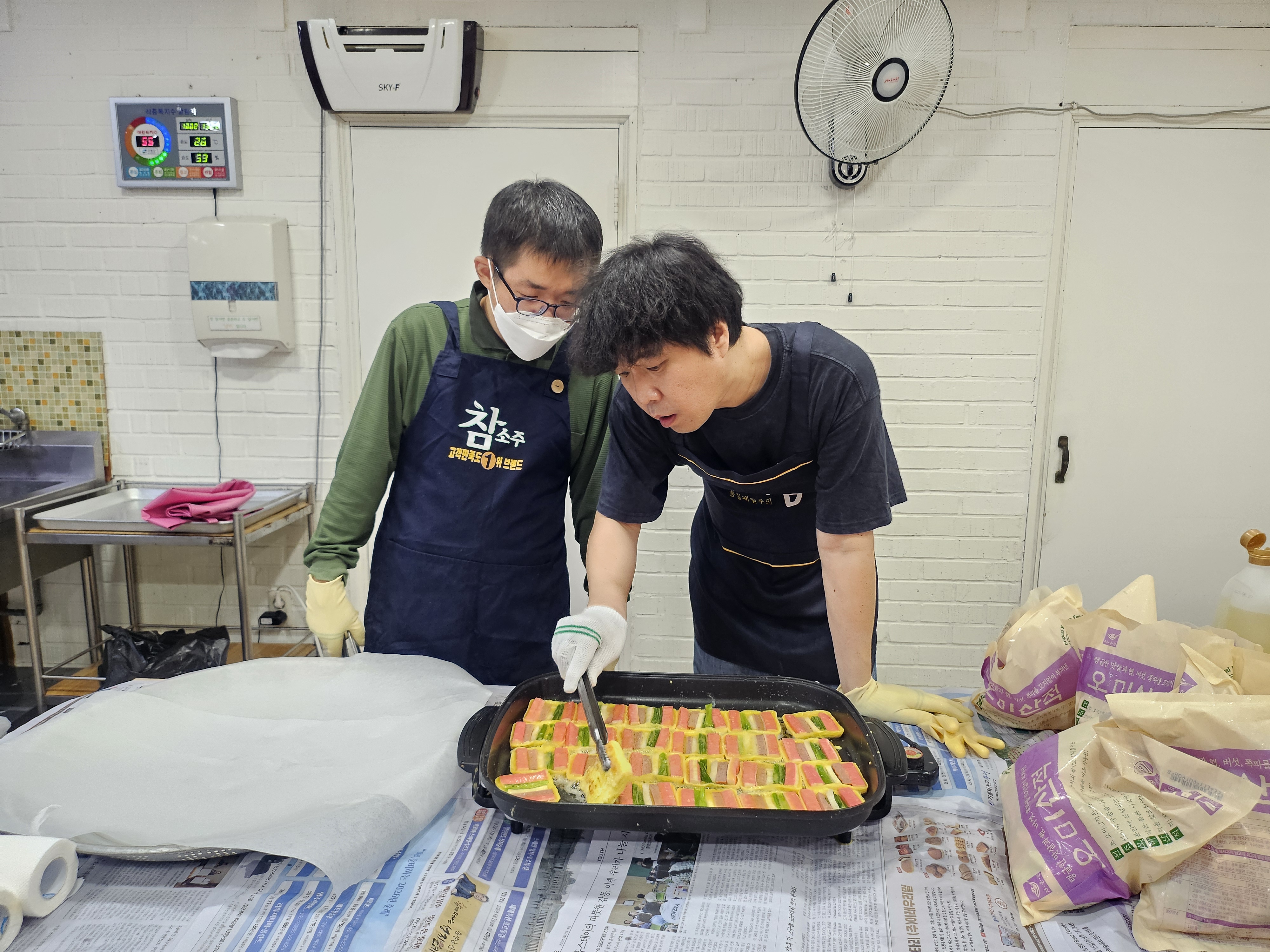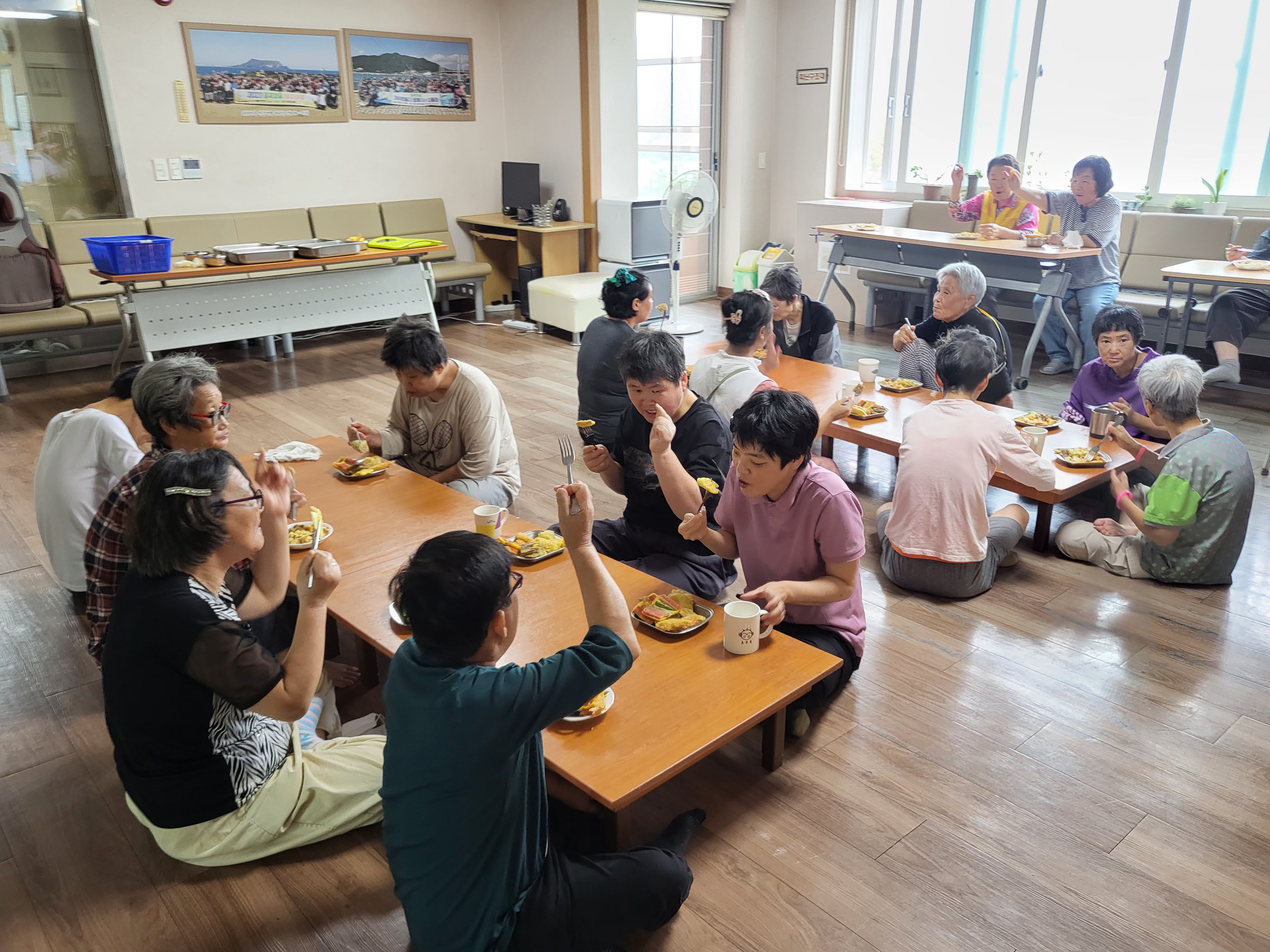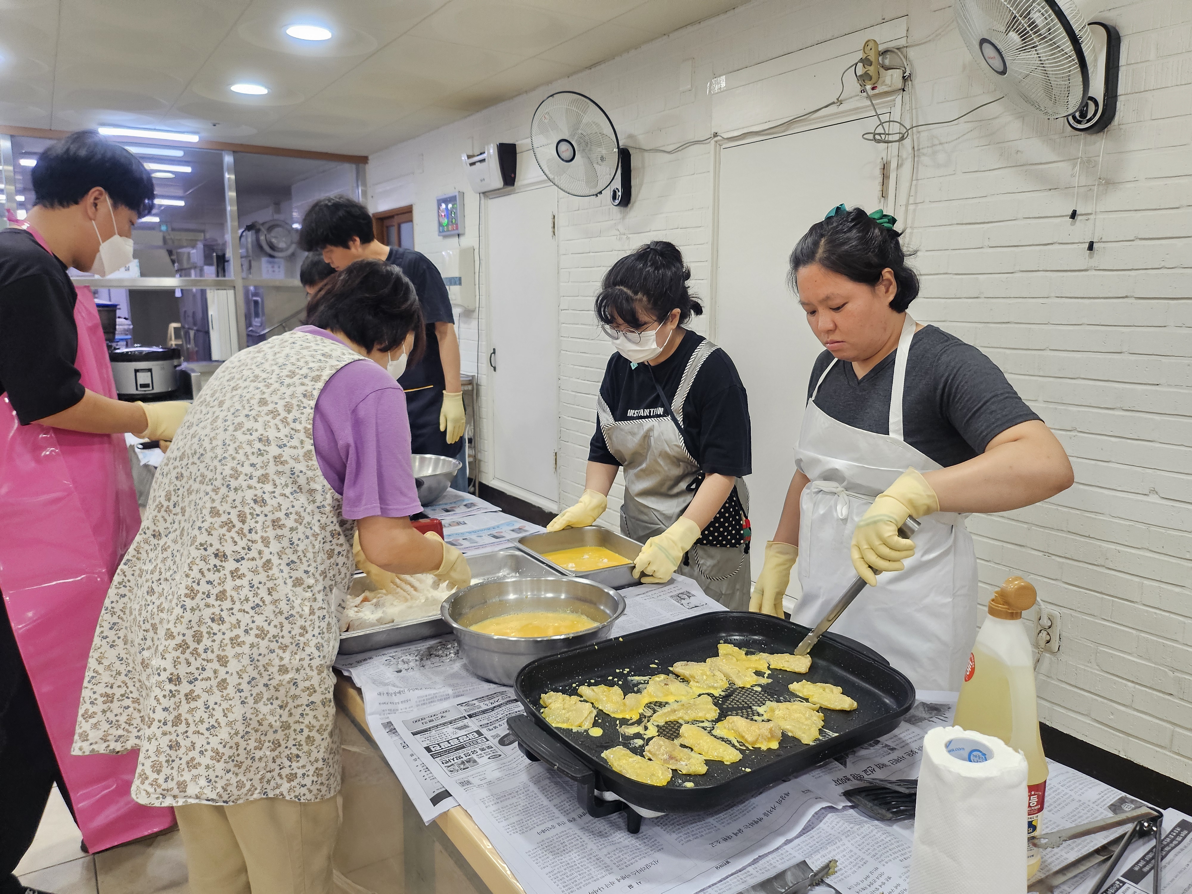 준비된 재료를 팬에 기름을 두르고 노릇노릇하게 부치면서 예전 추억을 이야기하기도 하고, 바로 구워서 먹는 전이 맛있다고 이야기하며 활짝 웃으시는 거주인분들의 모습이 인상적이였습니다.