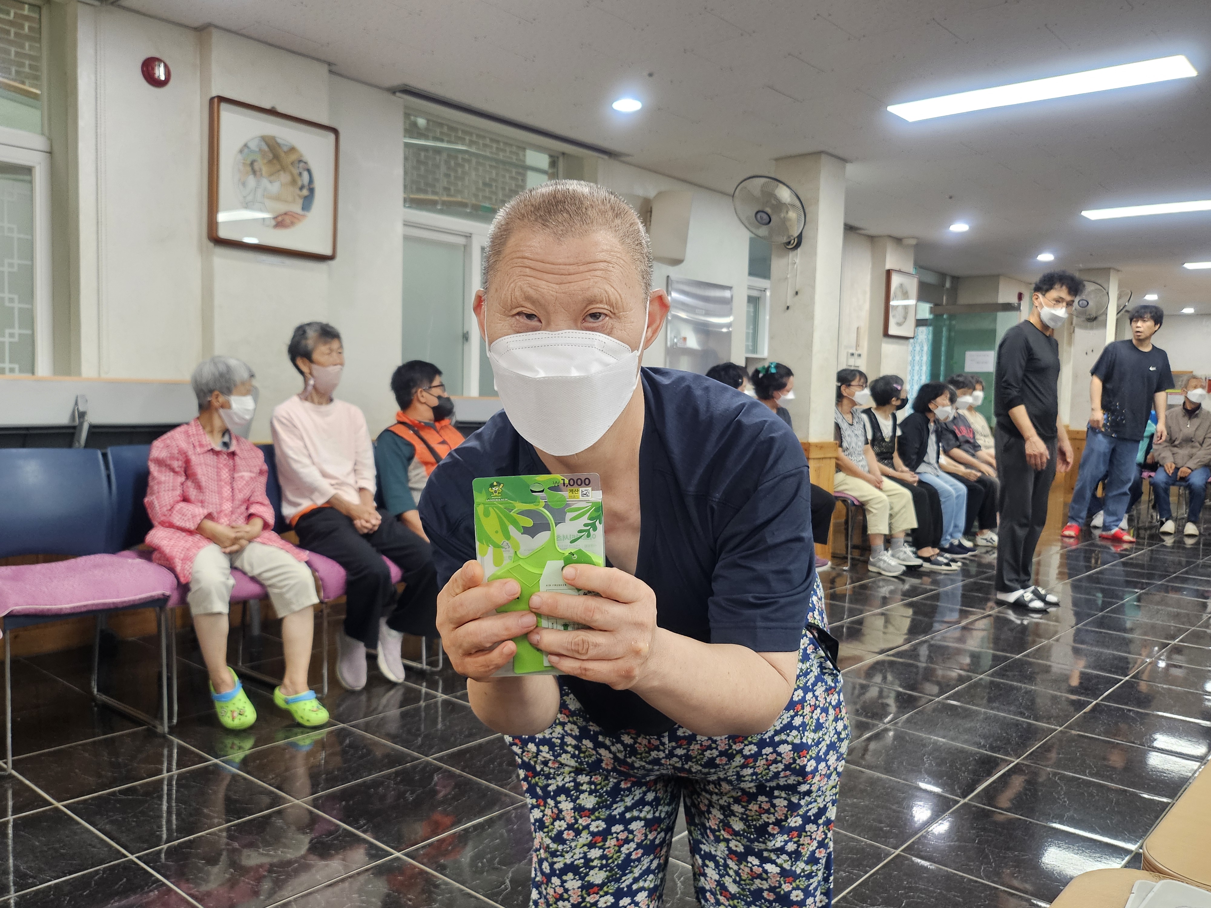 '윷'과 '모'가 나올때 마다 윷가락을 던진 거주인분들에게는 준비한 상품도 드렸습니다. 제일 좋아하는 시간입니다.
