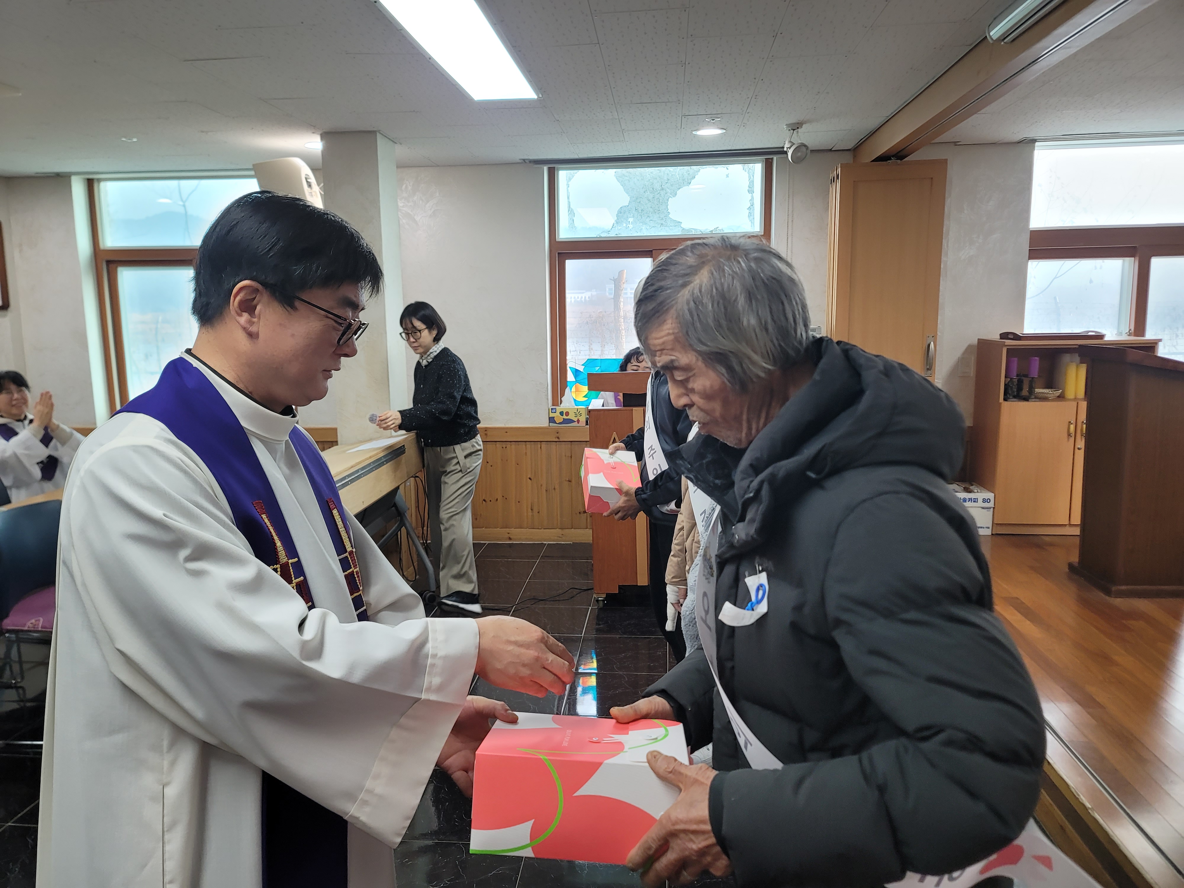 송년미사를 시작으로 우수 거주인 시상식에서는 한 해 동안 성실하게 들꽃마을과 거주인분들을 위해 도움을 주고 변함없는 모습을 보여준 다섯 분(김이준, 송인용, 김중희, 정병연, 김정옥)에게 상품과 감사의 마음을 전하였습니다.