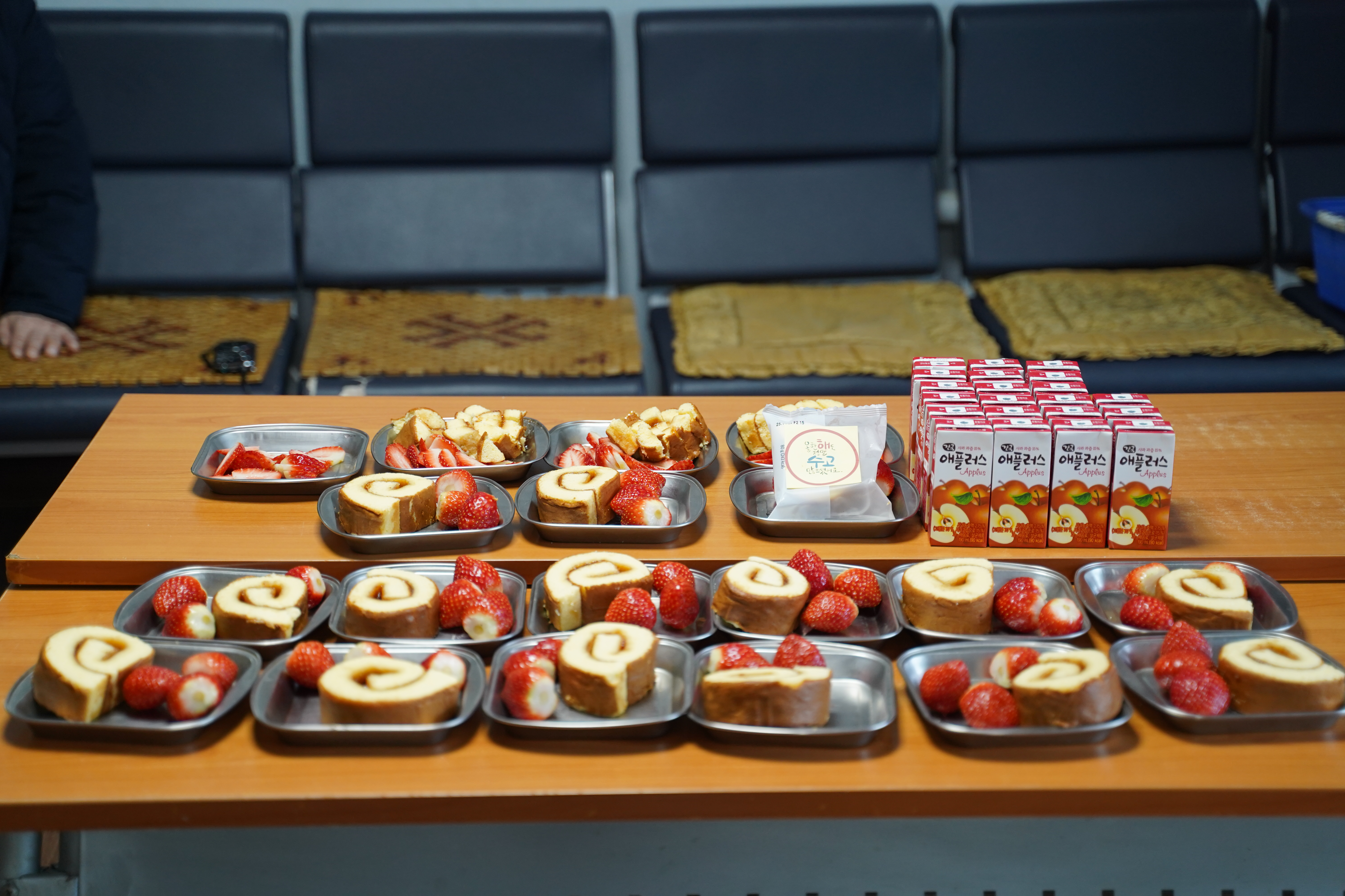 시상식 후에는 점심으로 특식(자연산 회)을 거주인과 직원이 함께 하고 이후 생활관 각층에서는 송년 다과모임을 가지며, 구성원간 소통과 지지의 분위기를 자연스럽게 가졌습니다.